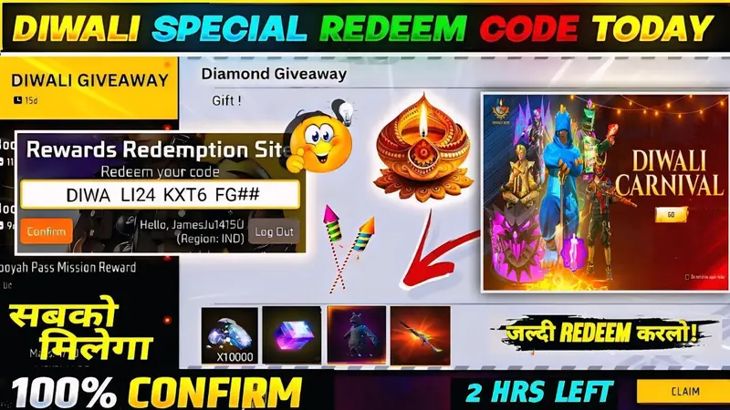 Free Fire Diwali Redeem Code: दिवाली पर मिल रहा है मुफ्त रिवॉर्ड्स का तोहफा, जल्दी करें रिडीम